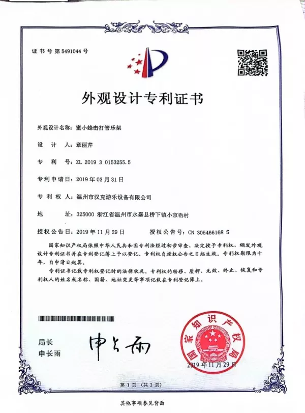 Buzzy Xylophone هو عضو في سلسلة Hank's Kakle. نموذجه هو Kakle HK-I14. شركة Hanke Amusement Equipment Co., Ltd. هي شركة متخصصة في تصنيع أدوات الإيقاع الخارجية الموجودة في Wenzhou، مقاطعة Zhejiang. لقد حصلنا على شهادات التأهيل ذات الصلة مثل CCC CE TUV.