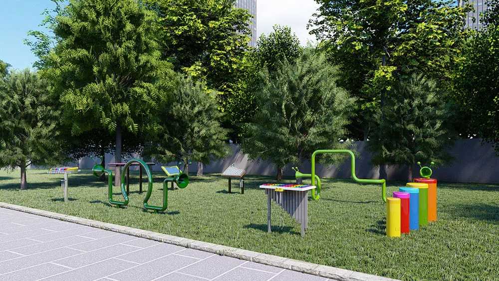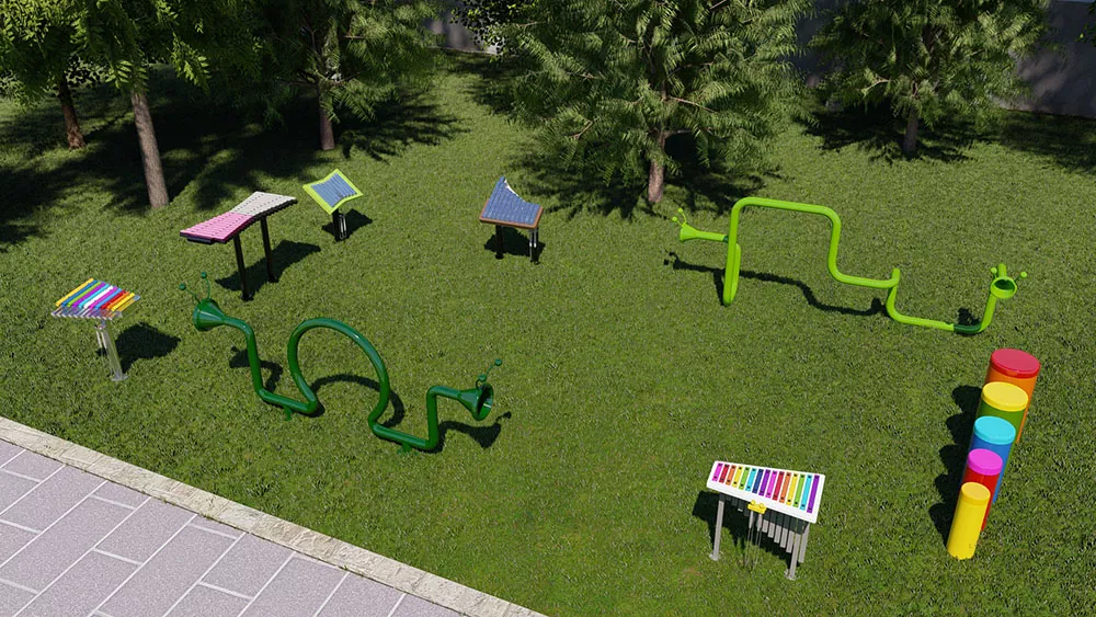 Melody Outdoor Musical Park Instrument عبارة عن هاتف معدني خارجي مضغوط وأنيق يجذب المستمعين بلهجة مشرقة وطويلة الأمد. يحتوي على تسع ملاحظات من الألومنيوم المخلوطة ، تم ضبطها على مقياس الخماسي في C Major ، مما ينبعث منها صوتًا ممتعًا لطيفًا في نطاق متوسط المدى/السوبرانو. مصنوع من إطارها المتين ورنينها من الأنابيب المجلفنة عالية الجودة ، مما يضمن الحياة الطويلة والمتانة.