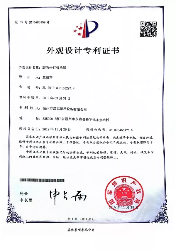 في الوقت نفسه، كمنتج مملوك لشركة Hank، تقدمنا بطلب للحصول على شهادة براءة اختراع لتصميم حامل الآلات الإيقاعية على شكل حمار وحشي في عام 2019 وحصلنا على موافقة من مكتب الملكية الفكرية الصيني.